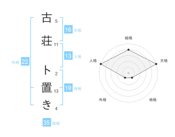 古荘 ト置きさんの天格は16画の5点!