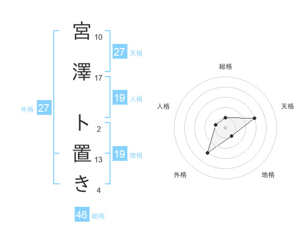 宮澤 ト置きさんを姓名の画数から五運を鑑定