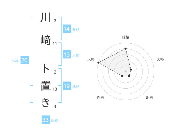 川﨑 ト置きさんを姓名の画数から五運を鑑定