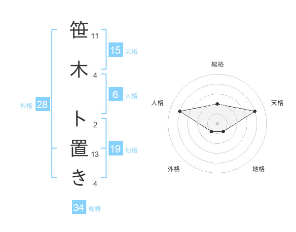 笹木 ト置きさんの総格は34画の2点!