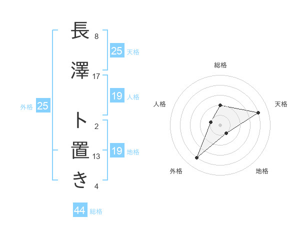 長澤 ト置きさんの外格は25画の4点!