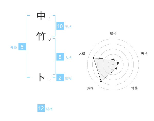 中竹 トさんの総格は12画の1点!