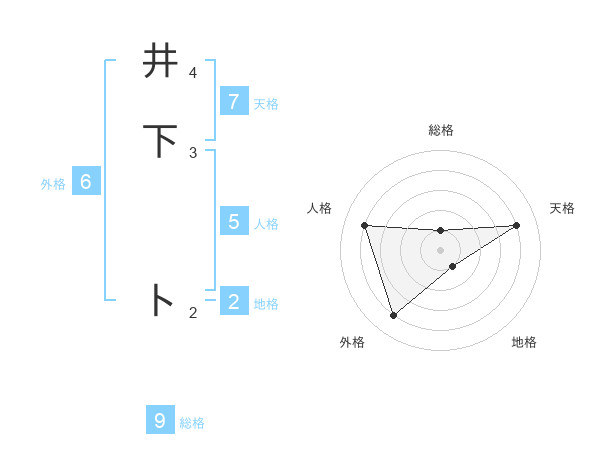 井下 トさんの総格は9画の1点!