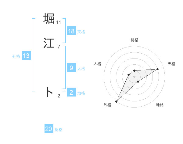 堀江 トさんの天格は18画の4点!