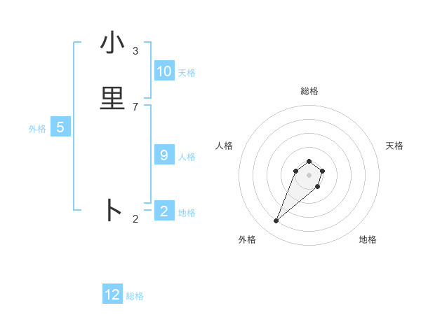 小里 トさんの総格は12画の1点!