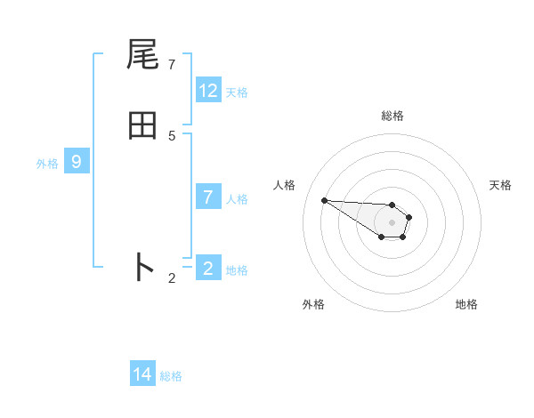 尾田 トさんの天格は12画の1点!