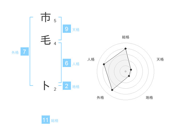 市毛 トさんの総格は11画の4点!