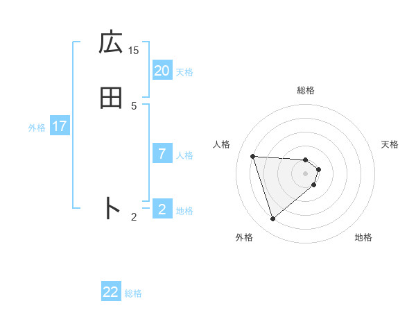 広田 トさんの総格は22画の1点!