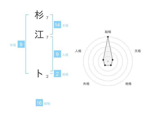 杉江 トさんの総格は16画の5点!