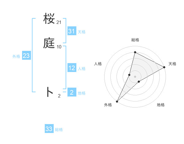桜庭 トさんの総格は33画の4点!