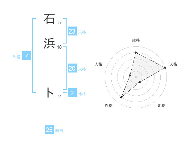 石浜 トさんの総格は25画の4点!