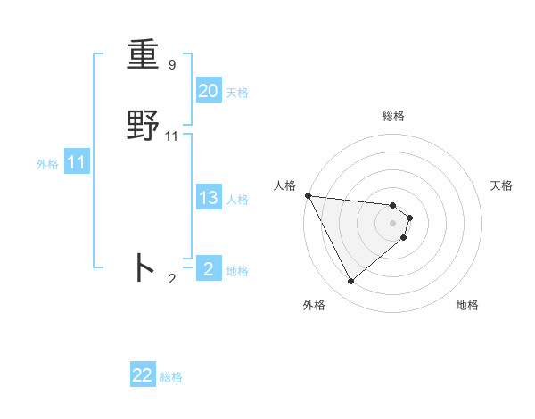 重野 トさんの総格は22画の1点!