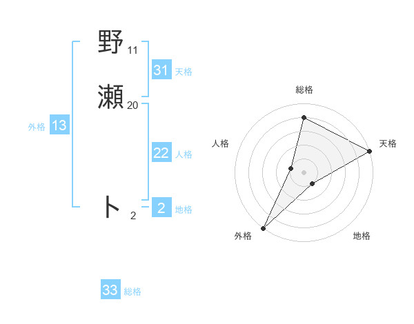 野瀬 トさんの外格は13画の5点!