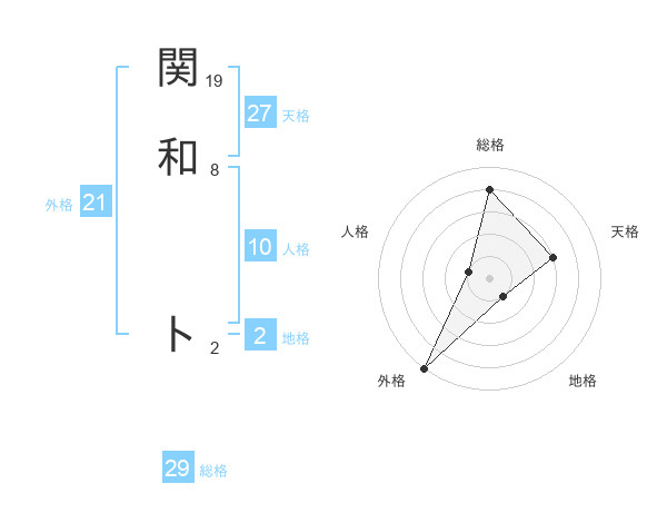 関和 トさんの総格は29画の4点!