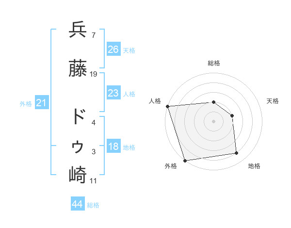 兵藤 ドゥ崎さんの総格は44画の2点!