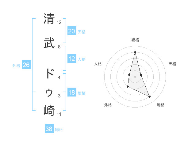 清武 ドゥ崎さんの総格は38画の4点!