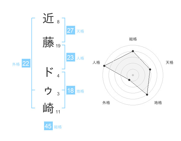 近藤 ドゥ崎さんの外格は22画の1点!