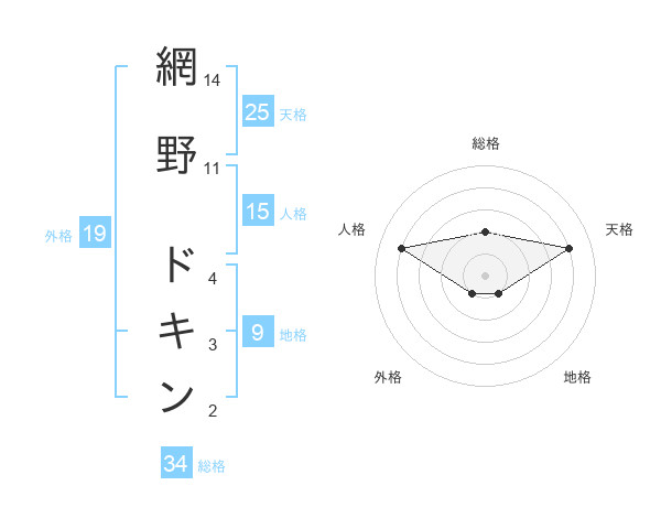 網野 ドキンさんの天格は25画の4点!
