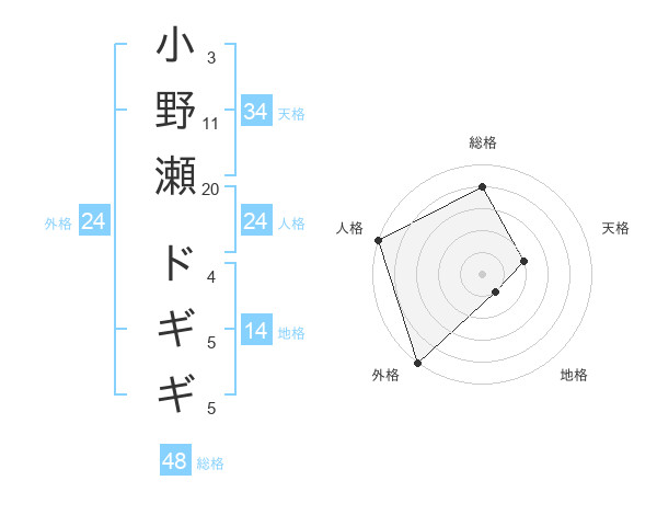 小野瀬 ドギギさんを姓名の画数から五運を鑑定