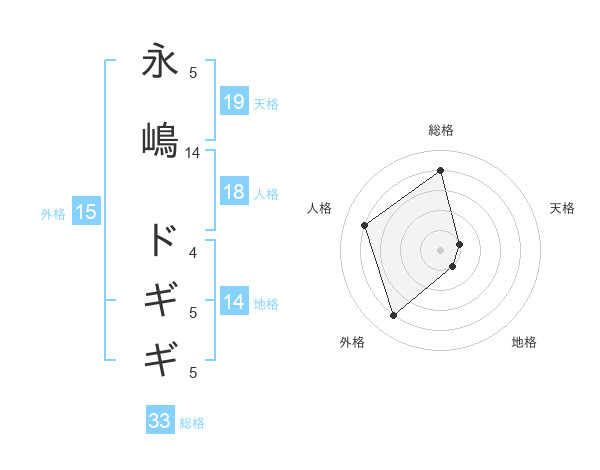 永嶋 ドギギさんを姓名の画数から五運を鑑定