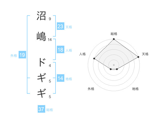 沼嶋 ドギギさんの総格は37画の5点!