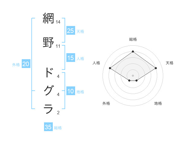 網野 ドグラさんを姓名の画数から五運を鑑定
