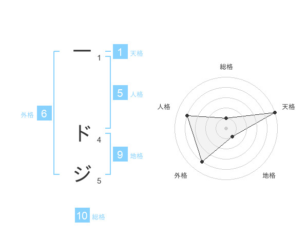一 ドジさんの天格は1画の5点!