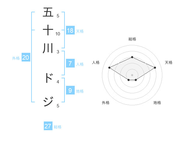 五十川 ドジさんの総格は27画の3点!