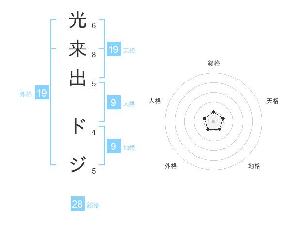光来出 ドジさんの総格は28画の1点!