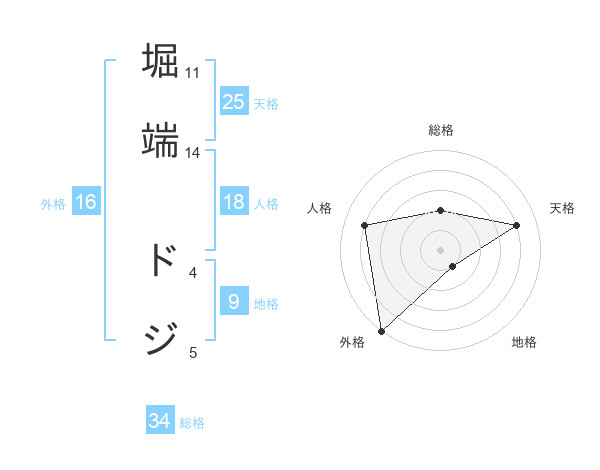 堀端 ドジさんの総格は34画の2点!