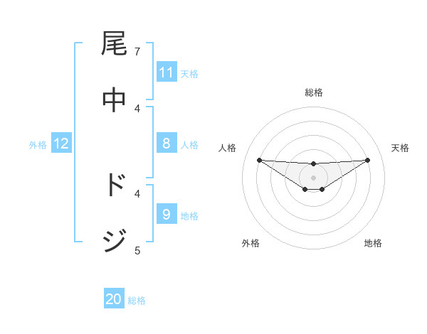 尾中 ドジさんを姓名の画数から五運を鑑定