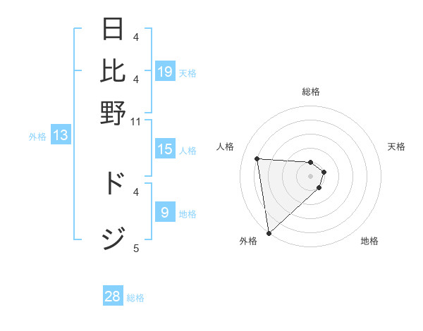 日比野 ドジさんを姓名の画数から五運を鑑定