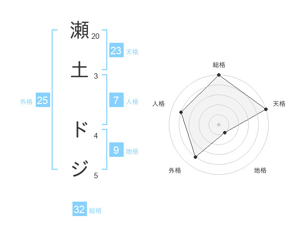 瀬土 ドジさんの総格は32画の5点!