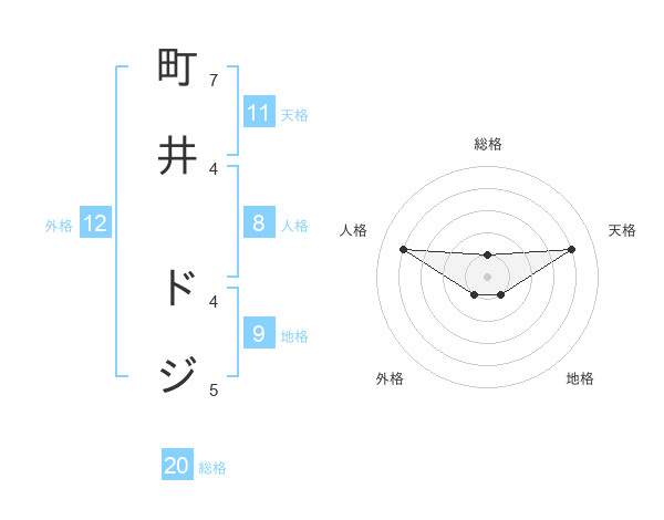 町井 ドジさんの総格は20画の1点!