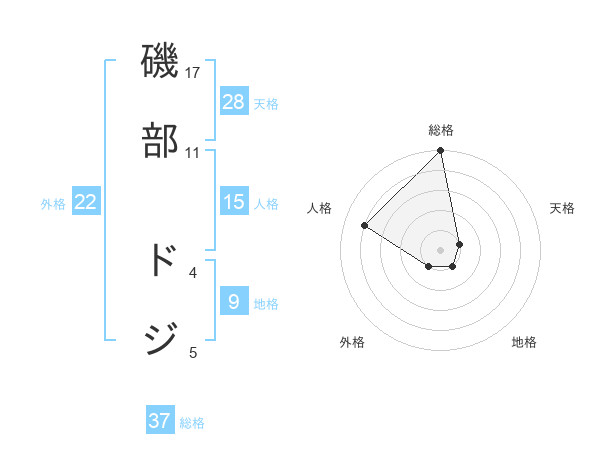 磯部 ドジさんの総格は37画の5点