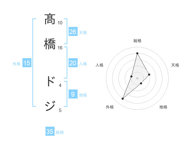 髙橋 ドジさんの総格は35画の4点!