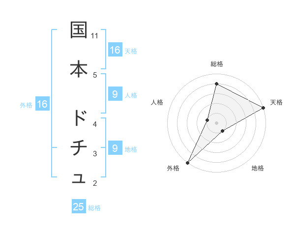 国本 ドチュさんを姓名の画数から五運を鑑定