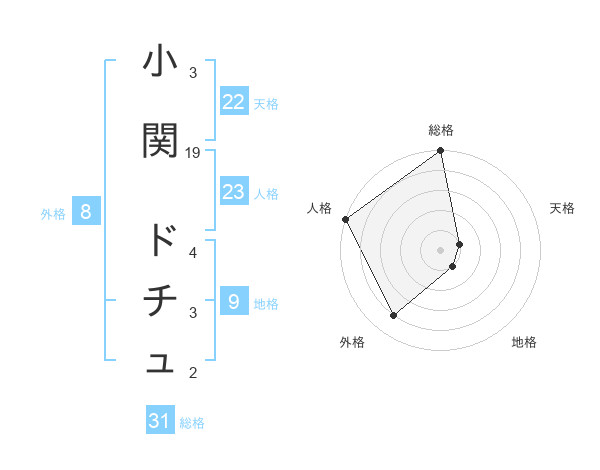 小関 ドチュさんを姓名の画数から五運を鑑定