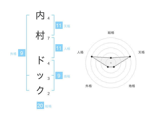 内村 ドックさんの総格は20画の1点!