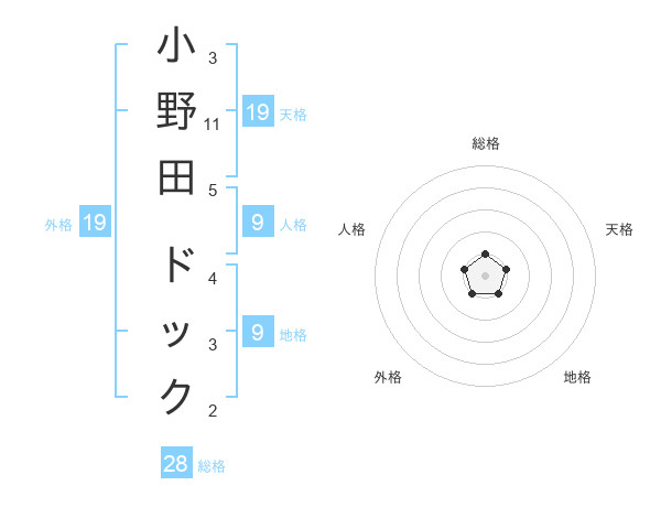 小野田 ドックさんを姓名の画数から五運を鑑定