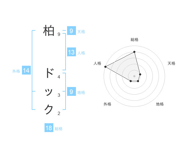 柏 ドックさんの総格は18画の4点!