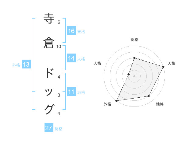 寺倉 ドッグさんの総格は27画の3点!