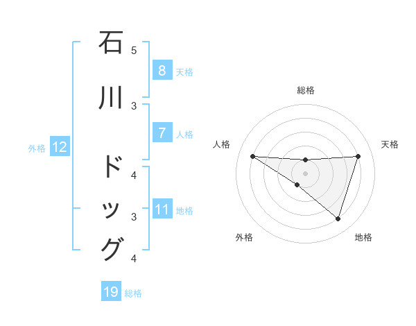 石川 ドッグさんの総格は19画の1点