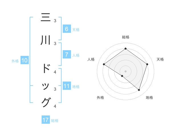 三川 ドッグさんを姓名の画数から五運を鑑定