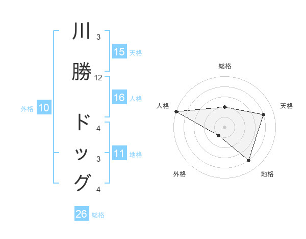 川勝 ドッグさんの天格は15画の4点!