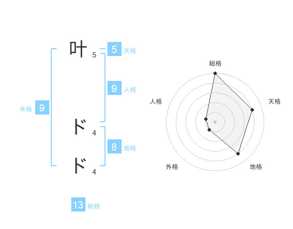 叶 ドドさんの総格は13画の5点!