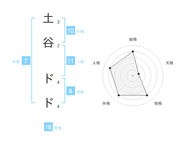 土谷 ドドさんの総格は18画の4点!