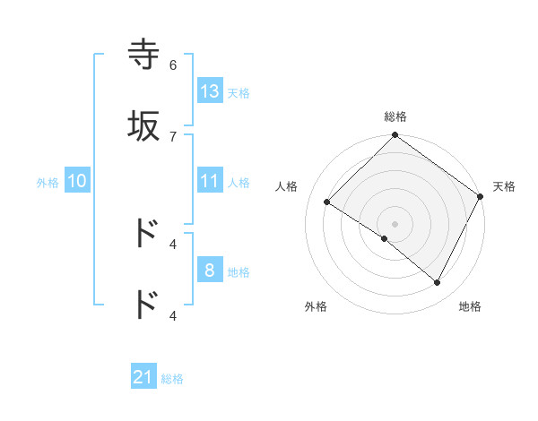 寺坂 ドドさんの総格は21画の5点!