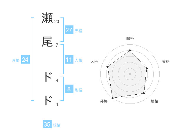 瀬尾 ドドさんを姓名の画数から五運を鑑定