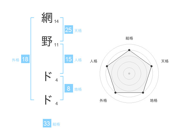 占い結果は姓名判断である以上、良い場合も悪い場合もありますが、決してお名前を誹謗中傷するものでなく、画数の自動計算によって得られたものです。また、本サイトの検索によって得られた鑑定結果で、第三者を誹謗中傷したり名誉を棄損するような行為を禁じます。